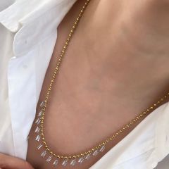 Çelik Baget Taşlı Dorika Kolye 52cm